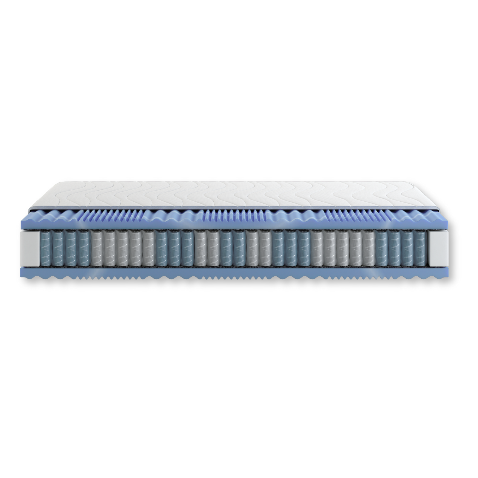 Geltouch® gelskumskiktet integrerat i madrassens övre och nedre delar kännetecknas av hög densitet och en speciell zonskärningsstruktur, vilket säkerställer god anpassning till kroppen och tryckavlastning för ryggrad och leder samt ger en behaglig massagekänsla.
